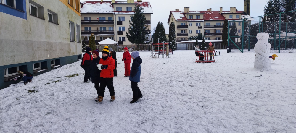 Uczniowie klas drugich przeżyli niesamowitą integrację! Dzień rozpoczął się od zimowego szaleństwa? mnóstwa radości i wspólnych, energicznych zabaw na śniegu.