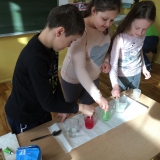 Klasa 2a gościła na zajęciach panią Anettę Matusik, która jest chemikiem. Pani pokazała dzieciom różne kuchenne eksperymenty. Przy udziale uczniów zrobiono np. tęczę w szklance, która się bardzo wszystkim podobała. Na zajęcia zaprosiliśmy również klasę 3. Dzieci chętnie powtórzą doświadczenia w domu, ponieważ są ciekawe i bezpieczne.
