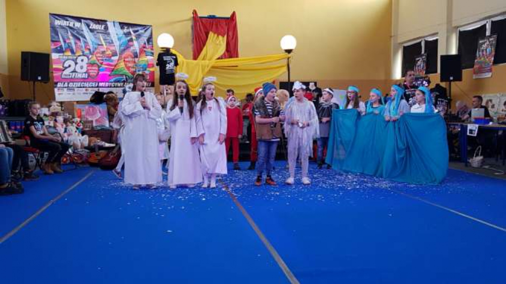 Klasa 3a wraz z wychowawcą wystąpiła podczas tegorocznej Wielkiej Orkiestry Świątecznej Pomocy z przedstawieniem pt. "Zagubiony dzwoneczek" oraz repertuarem wokalnym.