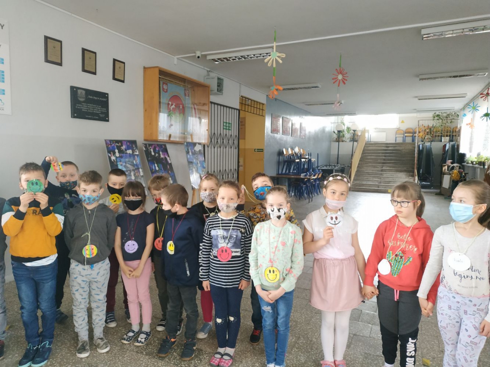 Uczniowie za pomocą emotek wyrażali swój nastrój i emocje. Klasy najmłodsze wzięły w tym dniu udział w spotkaniu, na którym starsi koledzy z kl. 3 przypomnieli zasady bezpieczeństwa na terenie szkoły oraz postępowania w sytuacjach trudnych.
