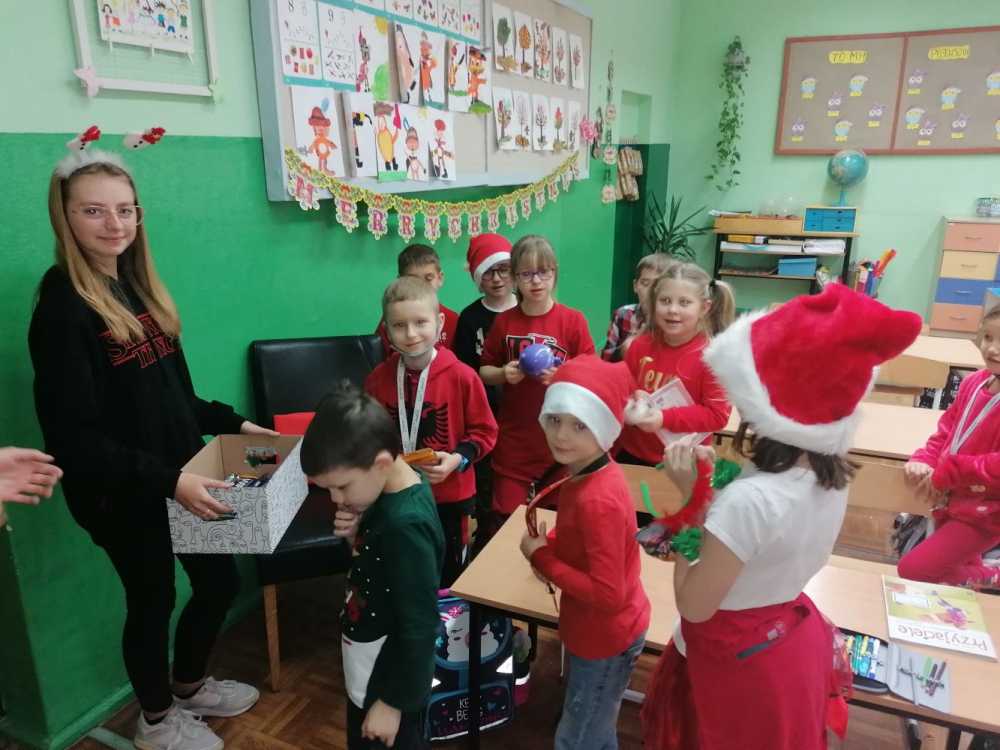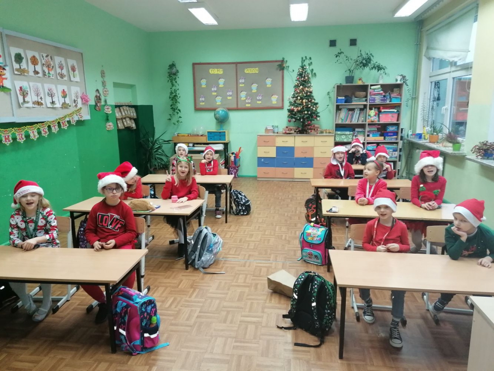 W ten piękny mroźny i śnieżny dzień naszą klasę odwiedził św. Mikołaj by wręczyć prezenty grzecznym pierwszakom. W liście do dzieci poprosił o wykonanie kilku zadań, które zostały spełnione w mgnieniu oka . W podziękowaniu za prezenty uczniowie stworzyli dla Mikołaja zimowy pejzaż. Warto wspomnieć, że klasa otrzymała dodatkową porcję słodyczy, dzięki życzeniu Mateusza, który zapragnął prezentu nie tylko dla siebie ale także dla swoich kolegów i koleżanek.
