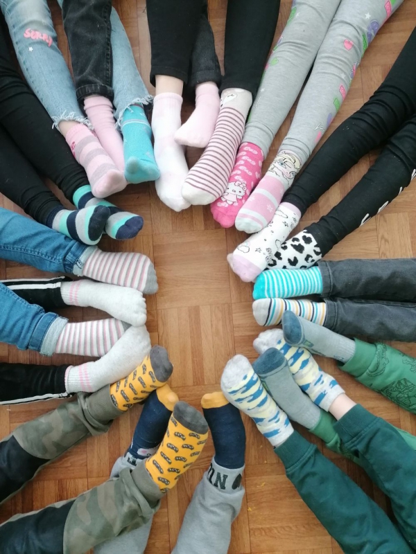 Pierwszy dzien wiosny to także data związana z corocznymi obchodami Światowego Dnia Osób z Zespołem Downa. Klasa 1 a ubrała tego dnia dwie różne skarpetki, co symbolizuje solidarność z tymi wyjątkowymi osobami. Nie brakło również rozmów na temat niepełnosprawności, trudności z jakimi mierzą się osoby z ZD a także potrzeby akceptacji w środowisku.