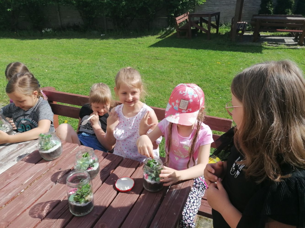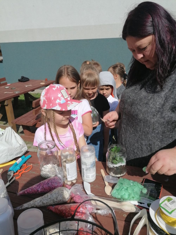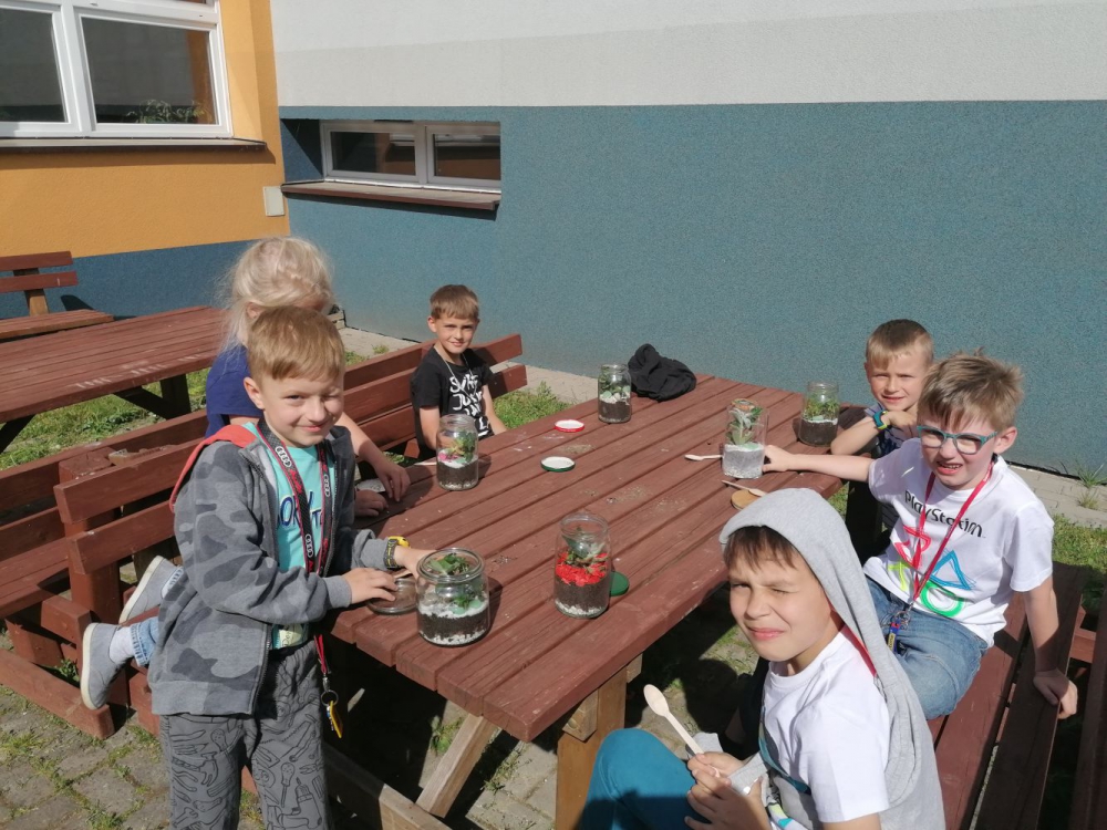 Tuż przed Dniem Mamy uczniowie klasy 1a brali udział w tworzeniu własnego lasu w słoiku. W ich wykonaniu pomagała florystka Pani Joanna Waszczak. Uczniowie poznali etapy powstawania tej pięknej ozdoby oraz pod bacznym okiem naszego gościa sami dobierali elementy dekoracyjne. Piękne ozdoby zostały wręczone kochanym mamom i tatusiom.