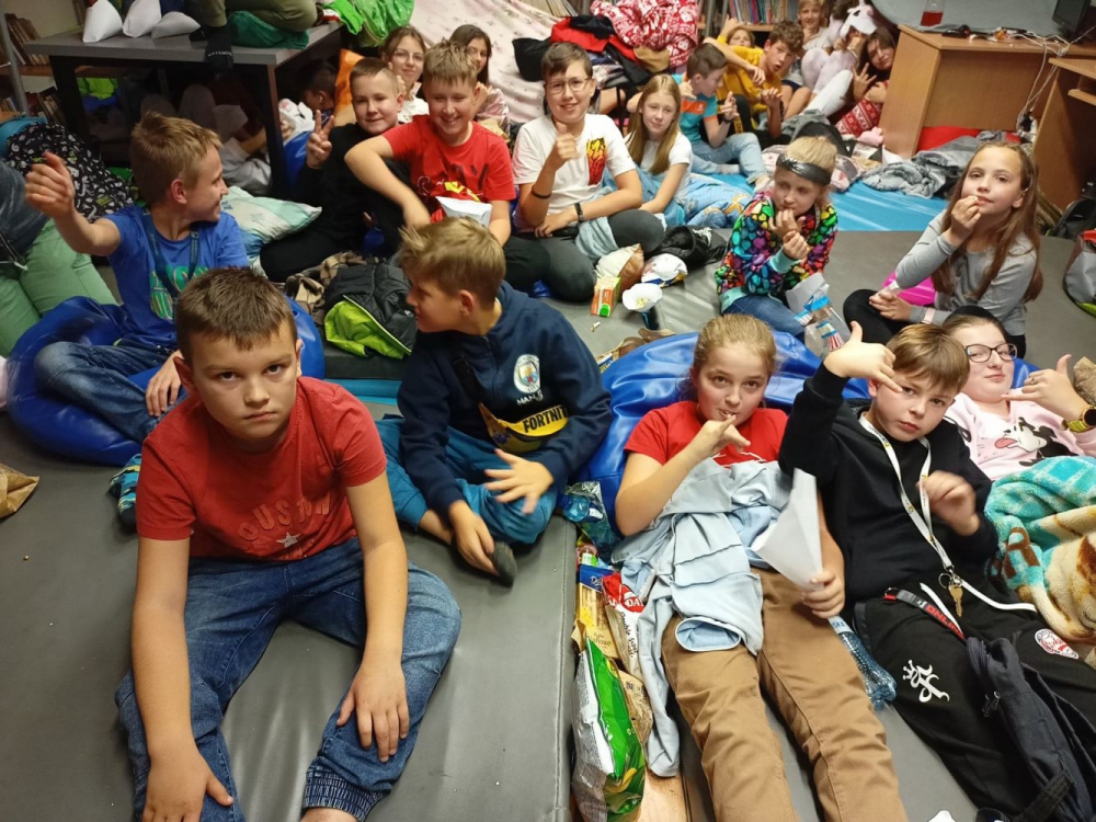 W piątkowy wieczór 7 października nasi uczniowie spotkali się w bibliotece szkolnej z okazji ogólnopolskiej Nocy bibliotek pod hasłem: "To się musi powieść". Wydarzenie to było w naszej szkole świętem biblioteki i czytania. W niekonwencjonalny sposób miało zachęcić uczniów do korzystania z zasobów biblioteki, w której czekały na czytelników specjalne wydarzenia. W naszej szkole odbyła się Filmowa Noc Biblioteki oraz oczywiście długo wyczekiwane przez dzieci nocowanie w bibliotece.