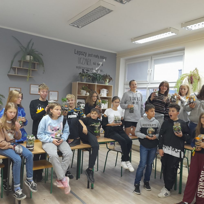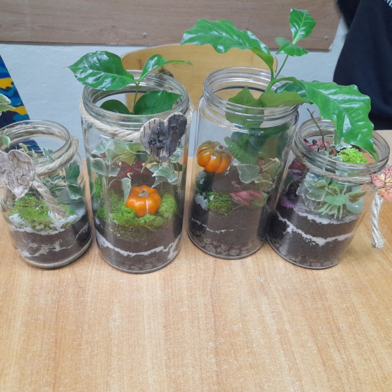 Z inicjatywy Samorządu Uczniowskiego odbyły się w naszej szkole warsztaty florystyczne pt. "Las w słoiku". Pani Joanna Waszczak w ciekawy i przystępny sposób opowiedziała nam historię "lasów w słoiku" oraz pokazała jak taką kompozycję wykonać. Zajęcia były ciekawe, każdy uczestnik mógł wykazać się fantazją i oryginalnym podejściem do tematu. Bardzo dziękujemy pani Joannie Waszczak i pani Magdalenie Antoniszyn za poświęcony mam czas i pomoc w tworzeniu zielonych kompozycji!