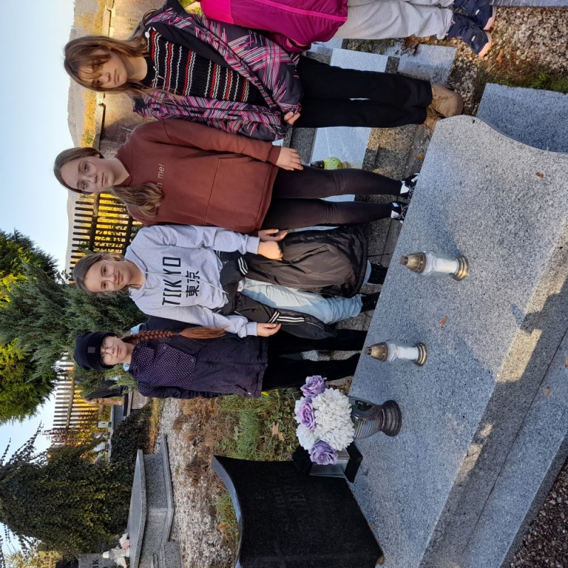 Uczniowie nie zapomnieli również o nauczycielach i innych pracownikach szkoły, którzy odeszli z tego świata. Klasa VI a i b wraz z wychowawcami - p. Zuzanną Biroś i p. Robertem Królem udali się na cmentarz, by odwiedzić groby zmarłych pracowników naszej szkoły. Zapalony znicz, chwila refleksji o kruchości życia, przemijaniu... przypomnienie sylwetek zmarłych pracowników i pamięć o nich były głównym celem naszego wyjścia.