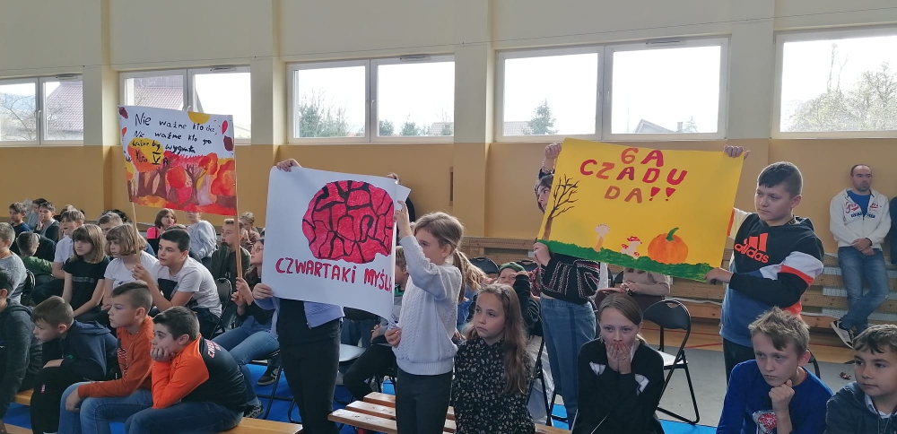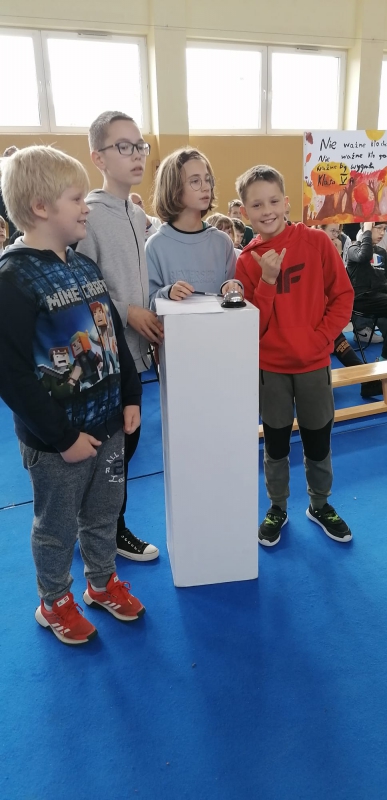 Zakończenie tego dnia stanowił Turniej Wiedzy z różnych przedmiotów, z podziałem na klasy 4-6, gdzie zwycięstwo odniosła klasa 6b, natomiast w klasach 7-8, zwycięstwo przypadło klasie 7a. Nagrody w postaci słodkich upominków odebrali przedstawiciele klas. Wszyscy bawili się znakomicie. Wszystkim uczniom dziękujemy za wspaniałą zabawę a wychowawcom i innym nauczycielom za pomoc w organizacji i opiece nad uczniami.