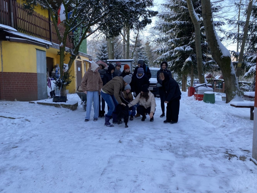 W dniu 13.12.2022 uczniowie klasy 7a odwiedzili zaprzyjaźnione schronisko dla zwierząt w Wałbrzychu. Dwa tygodnie przed wyjazdem odbyła się akcja sprzedaży ciast, za zebrane środki uczniowie zakupili jedzenie dla psów i kotów. Podczas wizyty w schronisku młodzież dowiedziała się jak funkcjonuje schronisko oraz zobaczyła jak wyglądają pomieszczenia dla psów i kotów.