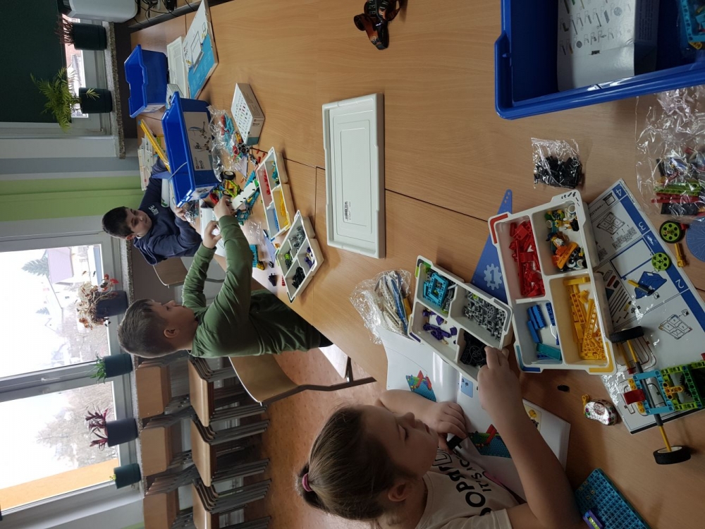 Warsztaty z robotyki dla dzieci to przede wszystkim sposób na kreatywne spędzenia czasu oraz na naukę przez zabawę. Robotyka rozwija prawą i lewą półkulę mózgu, przekazuje wiedzę na temat technologii oraz zasad ich działania. Najmłodsi uczą się w atrakcyjny sposób , przede wszystkim przez konstruowanie z klocków. Robotyka jest dziedziną, która zajmuje się projektowaniem, budową i programowaniem robotów. Może być ona interesującą i ekscytującą formą zajęć dla dzieci, ponieważ pozwala im na rozwijanie różnych umiejętności, w tym kreatywności, logicznego myślenia i umiejętności matematycznych i informatycznych. Uczniowie korzystając z materiałów, które szkoła otrzymała w ramach rządowego programu Laboratoria Przyszłości samodzielnie wykonali wybrane przez siebie maszyny, roboty i urządzenia o różnym stopniu trudności i złożoności elementów i oprogramowania. Zajęcia feryjne w naszej szkole to kontynuacja zajęć dodatkowych z robotyki realizowanych w tym roku szkolnym.