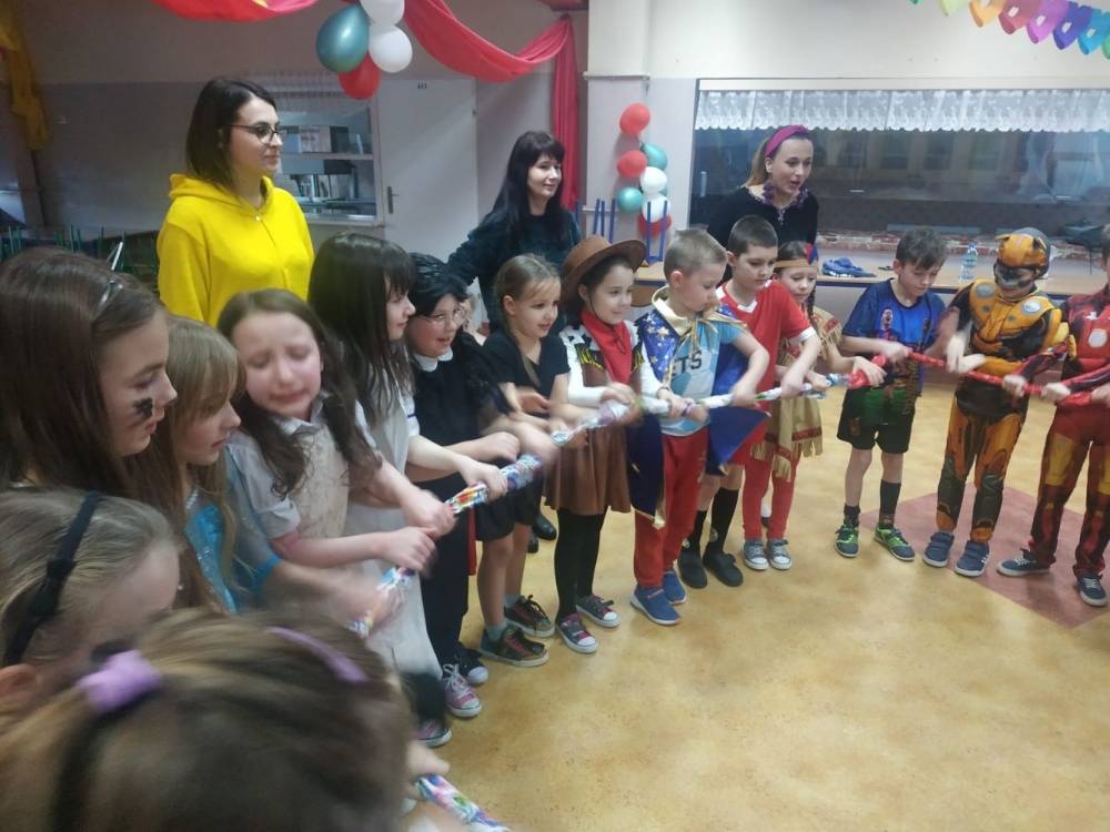 Tuż przed feriami uczniowie klas 1-3 wzięli udział w zabawie kończącej karnawał. Tańcom do znanych utworów towarzyszyły zabawy integracyjne, konkursy, pokazy taneczne. Uczniowie zaprezentowali się w pięknych strojach ulubionych bohaterów i postaci. Wszystkim towarzyszyły dobre humory.