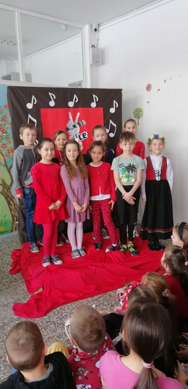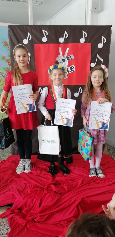 Tuż przed rozpoczęciem ferii mali artyści z klas 1-3 zaprezentowali swoje umiejętności wokalne i sceniczne podczas pierwszej edycji konkursu The Voice Kids. Chętni uczniowie przygotowali swoje ulubione utwory, które wykonali przed szkolną publicznością. Po burzliwych naradach jury w składzie : p. Damian Skorupiński, p. Marianna Fryc-Wyrostek, p. Agnieszka Zielińska przyznali I miejsce uczennicy kalsy 3 a Mai Wieczorkiewicz. II miejsce zajęła Martyna Gregorczyk z 2 a, natomiast III miejsce otrzymała Lena Urbanek z 1a. Wyróżnienie powędrowało do Pauliny Sarzyńskiej z 1a. To były pełne emocji i wzruszeń występy, które zostały nagrodzone statuetką dla zwyciężczyni oraz medalami dla pozostałych laureatów. Nie zabrakło nagród dla wszystkich. W naszej szkole jest sporo talentów. Kto wie, może za kilka lat zobaczymy naszych uczniów na polskiej scenie muzycznej.