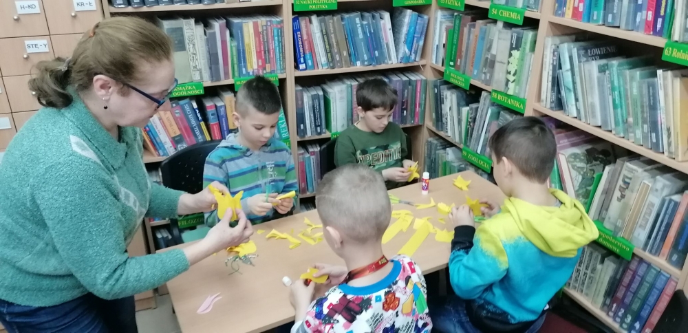 21 marca uczniowie klas 2a i 2b zostali zaproszeni do Biblioteki Publicznej w Chełmsku Śląskim. Pani Bibliotekarka wprowadziła uczniów w wiosenny klimat prezentując wiersze o Pani Wiośnie a także przytaczając ciekawostki o tej pięknej porze roku. Na koniec dzieci wykonały tulipany z papieru i bibuły. Miejmy nadzieję, że w ten sposób zaprosiły wiosnę do naszej miejscowości.