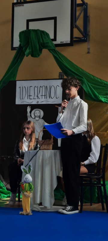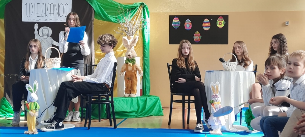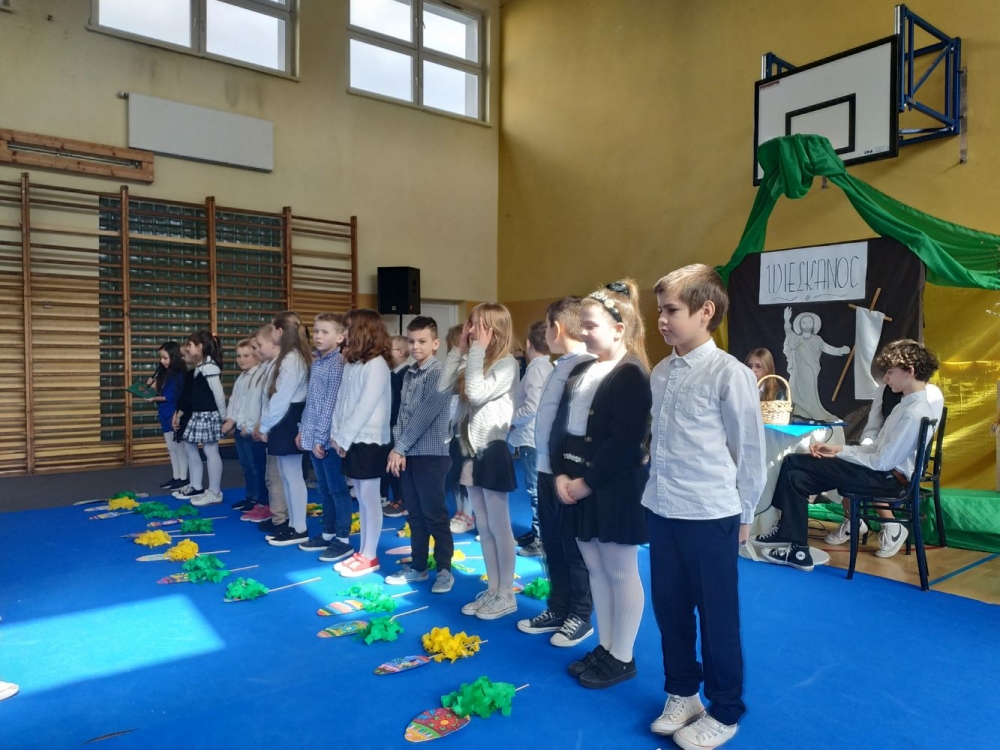 Dnia 05 kwietnia 2023r. odbył się w naszej szkole uroczysty apel wielkanocny. Montaż slowni- muzyczny przygotowali uczniowie klas starszych. Towarzyszyły im występy solistów oraz kleryk. Klasy młodsze 2a, 2b przygotowały wielkanocne wiersze i piosenki na ,,wesoło''.