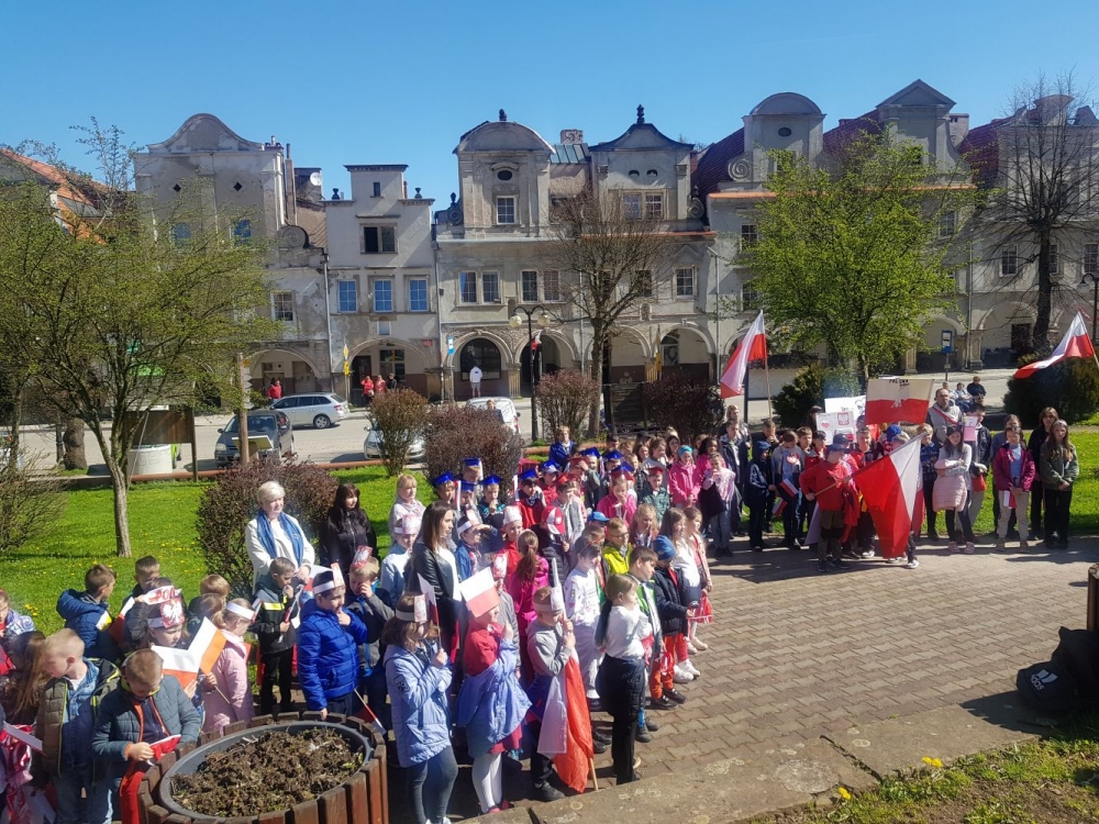 W dniu dzisiejszym cała społeczność szkoły uczestniczyła w Marszu Majowym z okazji Uchwalenia Konstytucji 3 maja. Ta kilkuletnia tradycja szkoły w Chełmksu Śląskim na stałe wpisała sie w wydarzeniach społeczności herbowej wsi. Wszytskie klasy oraz nauczyciele w rodosnym korowodzie, przy dźwiękach polskich piosenek patriotycznych udała się na rynek aby wysłuchać programu artystycznego przygotowanego przez starszych uczniów szkoły. Po odśpiewaniu polskiego hymnu narodowego uczniowie zaprezentowali najważniejsze fakty związane z historią Polski rozbiorowej, uchwaleniem aktu konstytucji oraz rolą i funkcjonowaniem Polski w Unii Europejskiej. Dopełniem marszu były rekwizyty patriotyczne przygotowane przez uczniów. Największą kreatywnością wykazały się przedszkolaki oraz dzieci z młodszych klas szkoły podstawowej.
