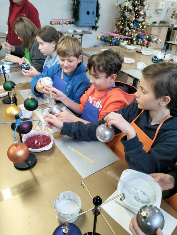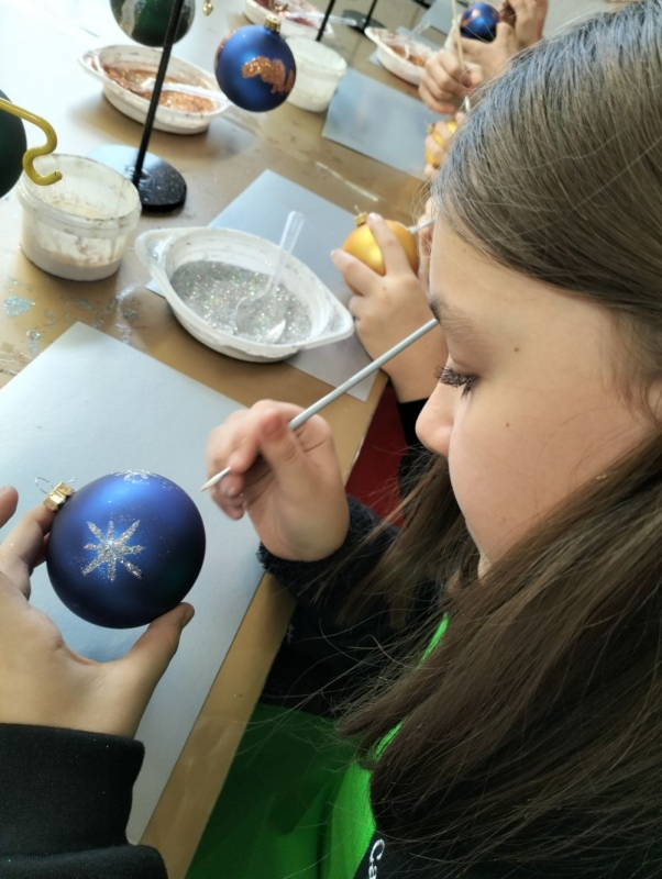 Dodatkowo młodzież miała okazję uczestniczyć w warsztatach i spróbować swoich sił w malowaniu i zdobieniu bombek co wcale nie było takie łatwe.