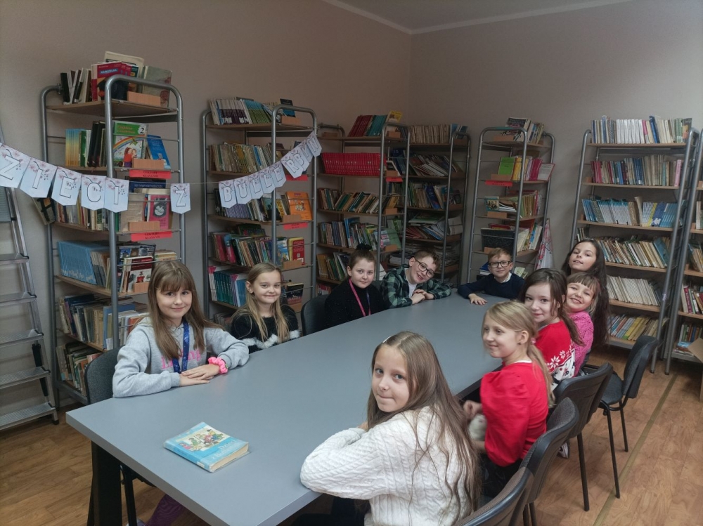 27.11.2023r. w szkolnej bibliotece między klasą 3a i 3b, odbył się konkurs nawiązujący do teleturnieju: "Jeden z dziesięciu". Konkurs sprawdzał znajomość lektury "Dzieci z Bullerbyn". Kilka dni wcześniej odbyły się eliminacje klasowe, z których wyłoniono najlepszych reprezentantów. Celem konkursu było zachęcenie dzieci do czytania lektur a także integracja obu klas. Wszyscy świetnie się bawili, nie zabrakło emocji i zdrowej rywalizacji między uczestnikami. Laureatami konkursu zostali: