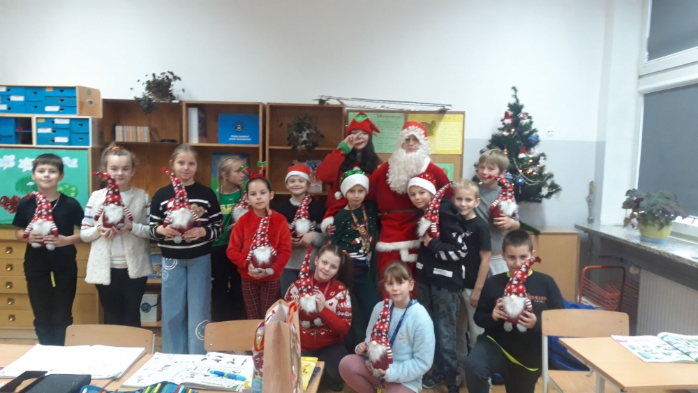 Dzień 6 grudnia to wyjątkowy czas dla wszystkich uczniów i z tej okazji w naszej szkole również pojawił się Mikołaj wraz ze swoją pomocnicą i odwiedził każdą klasę i wręczył słodkie upominki. Dzieci z klas 1-3 zaprezentowały wierszyki i zatańczyły przed Mikołajem oraz zrobiły sobie pamiątkowe zdjęcie. Niestety wizyta Mikołaja była dość krótka, ale mamy nadzieję że za rok zostanie u nas dłużej.