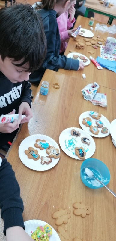 Przedświąteczny czas jest wyjątkowy wie o tym każdy z nas, dzieci w szczególności. Wstępem w magiczną atmosferę są zawsze Mikołajki. Z tej okazji od samego rana nasi uczniowie pałaszowali słodkości natomiast klasa 4A ozdabiała pachnące ciasteczka. Zbędne kalorie zostały spalone podczas mikołajkowego turnieju piłki ręcznej. To był z pewnością udany dzień!