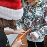 W ramach dodatkowych zajęć plastycznych uczniowie klas IV-VII samodzielnie wykonali ekologiczne stroiki świąteczne do których wykorzystali: mech, patyki oraz szyszki różnych gatunków drzew. W trakcie pracy mieli możliwość klejenia cięcia i piłowania drewna - co sprawiło im wiele radości. Stroiki zostały przekazane na sprzedaż podczas jarmarku bożonarodzeniowego z którego dochód jest przeznaczony na Radę Rodziców.