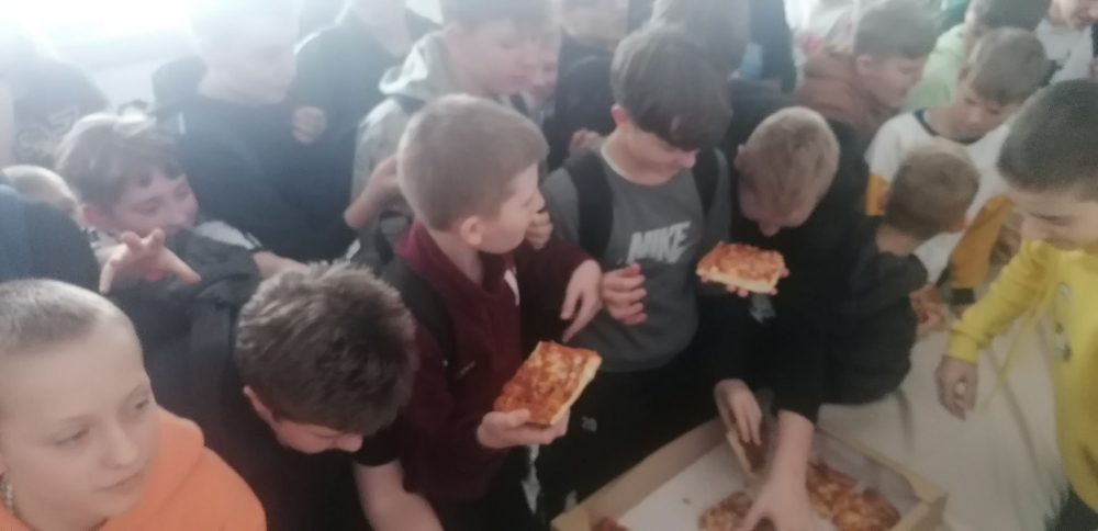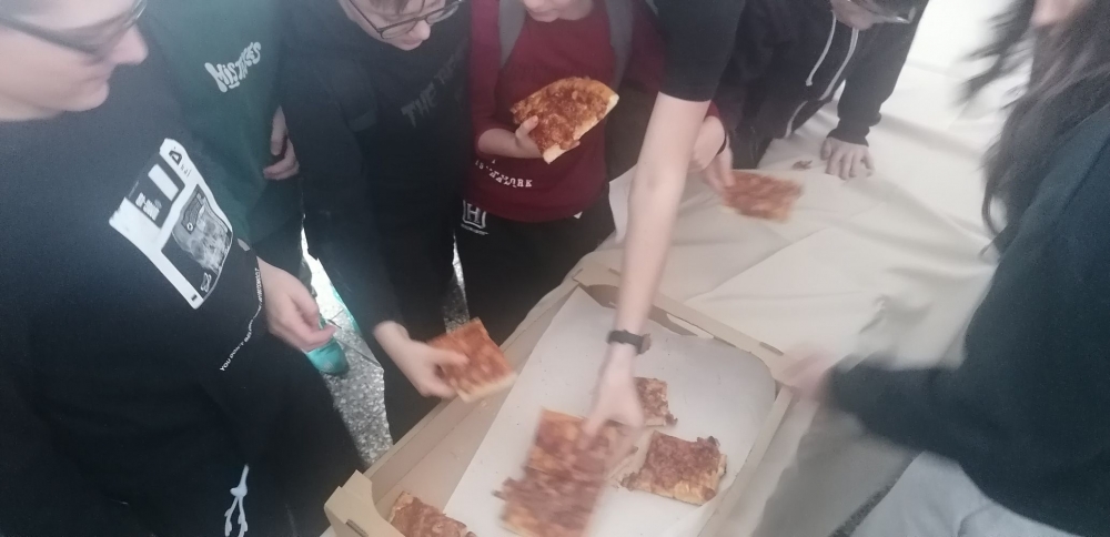 Nasza pizza rozeszła się w mgnieniu oka co tylko potwierdziło, że była pyszna, a jej zapach jeszcze przez długi czas unosił się na naszych szkolnych korytarzach.