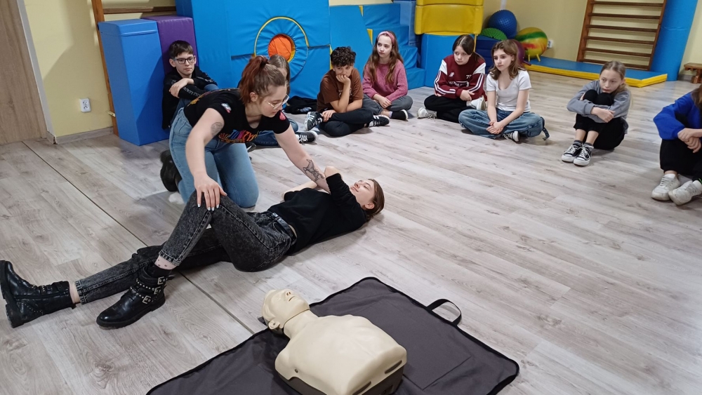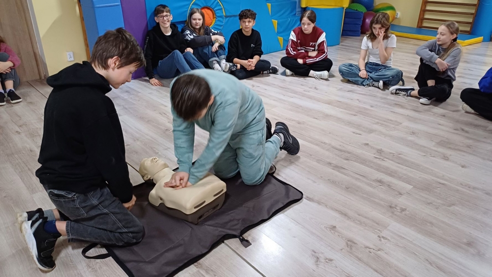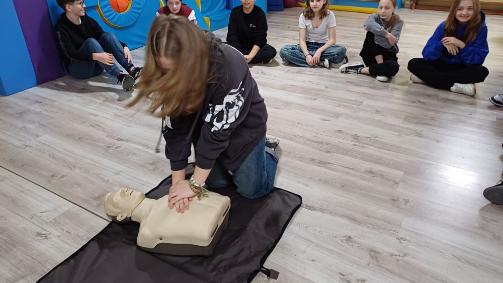 W naszej szkole mieliśmy przyjemność gościć naszą absolwentkę p. Klaudię Piekarczyk - ratownika medycznego. Na godzinie wychowawczej, uczniom klasy 6 a p. Klaudia przybliżyła zasady udzielania pierwszej pomocy. Masaż serca to bardzo trudny i wyczerpujący zabieg, który wymaga od osoby udzielającej pomocy, pewnych umiejętności. W sytuacji zagrożenia życia większość z nas stara się zachować zimną krew, by pomóc jak najlepiej. Pomocnym rozwiązaniem jest muzyka w odpowiednim tempie do masażu serca. I tak w rytm przeboju "Macarena" uczniowie ćwiczyli masaż serca. Zajęcia bardzo podobały się szóstoklasistom, którzy z dużym zaangażowaniem wykonywali wszystkie ćwiczenia.