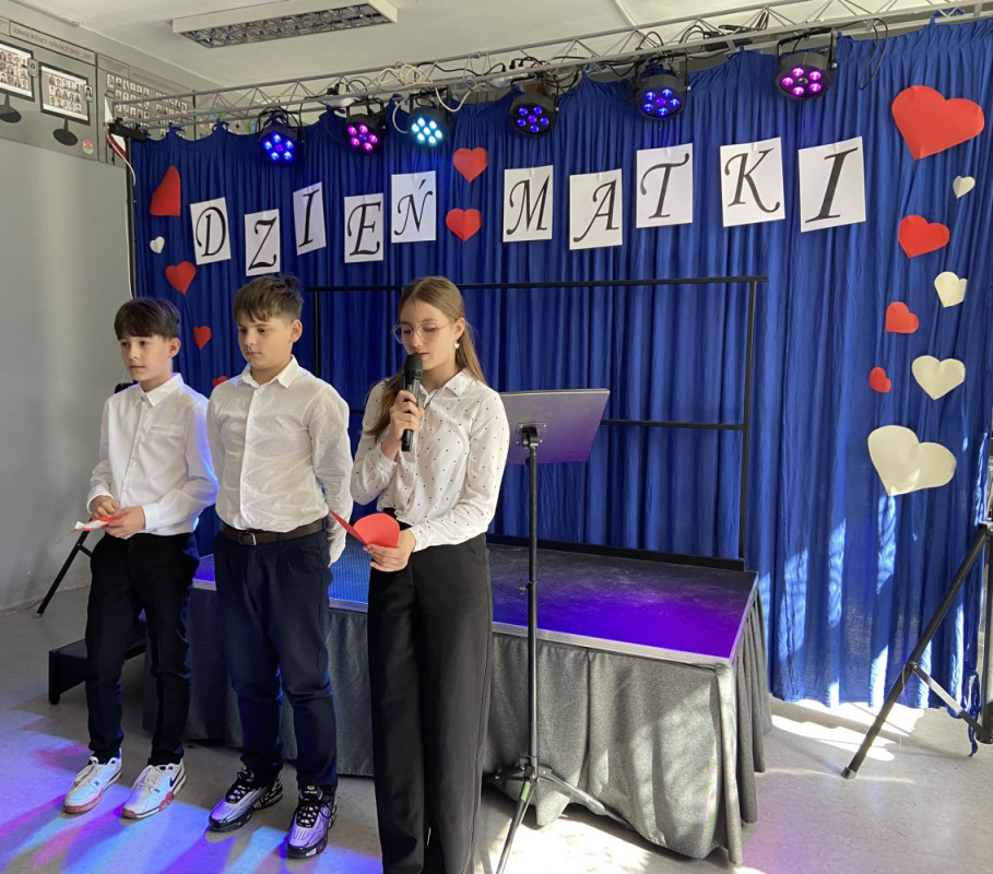 W dniu 26 maja w naszej szkole odbyła się uroczystość z okazji Dnia Matki. Uczniowie klasy 2a wraz ze starszymi kolegami z klasy 8a i 5a, przygotowali dla swoich mam, program artystyczny, który wzruszał i bawił nasze kochane mamy. Występy solistów: Alicji Wiśniowskiej, Franciszka Kociołka, Leny Urbanek i Nadii Liszki dostarczyły wielu wzruszeń.