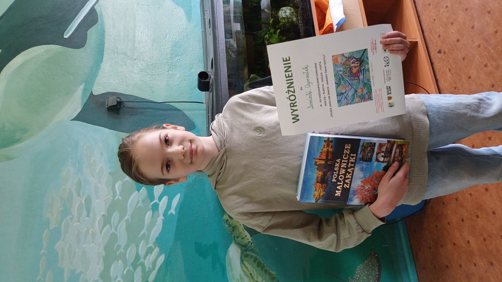 Z ogromną przyjemnością informujemy iż w XIII ogólnopolskim konkursie EKOLOG - PLASTYK, EKOLOG - POETA "POLSKA JAKIEJ NIE ZNACIE - BARWNY ŚWIAT MOTYLI" pod honorowym patronatem MINISTRA EDUKACJI, wyróżnienie otrzymała uczennica naszej szkoły Dominika Ogorzałek kl. Va.