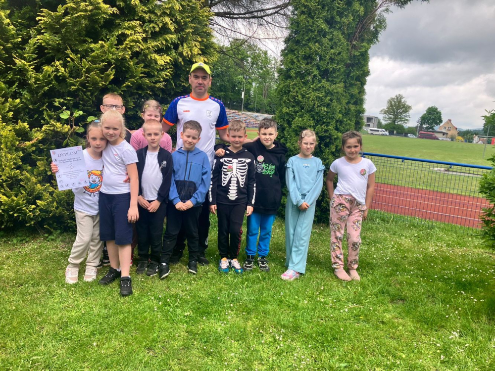 Dnia 26.05.2025 r. na stadionie przy ulicy Słowackiego w Kamiennej Górze odbyły się zawody powiatowe w trójboju lekkoatletycznym klas I. W zawodach udział wzięło 6 szkół. Rywalizacja toczyła się w biegu na 60 m, w rzucie piłeczką palantową, oraz w skoku w dal. W zawodach w każdej szkole udział brało 5 dziewcząt, oraz 5 chłopców. Nasi najmłodsi uczniowie startowali w takiej rywalizacji po raz pierwszy a byli to: