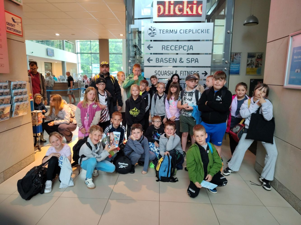W dniu 16 czerwca 2025 roku dla chętnych dzieci uczęszczających do naszej świetlicy szkolnej zorganizowana została wycieczka rekreacyjno-integracyjna na baseny termalne do Jeleniej Góry. Dzieci miło i aktywnie spędzili czas w kompleksie basenów. Po zabawie i relaksie udaliśmy się na posiłek.