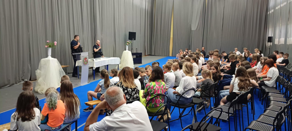 Policjanci poruszyli wiele ważnych tematów dotyczących bezpieczeństwa w różnych sytuacjach, z jakimi uczniowie mogą się spotkać podczas wakacji: