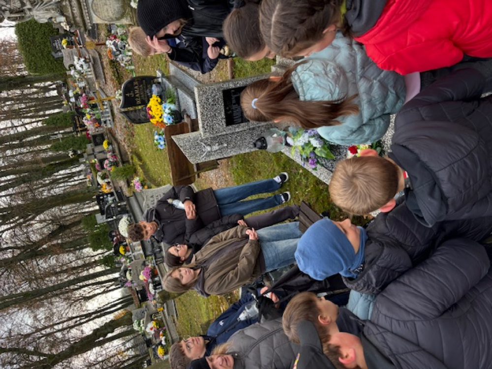 Wyjście na cmentarz stało się dla uczniów nie tylko lekcją historii i tradycji, ale także wyrazem szacunku, wdzięczności i pamięci o osobach, które pozostawiły po sobie trwały ślad w naszej społeczności szkolnej.