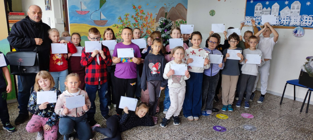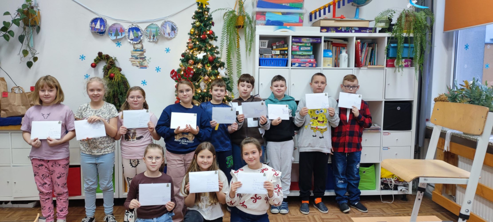 Święta Bożego Narodzenia kojarzą nam się również ze zwyczajem wysyłania kartek z życzeniami do naszych najbliższych. Uczniowie klas drugich własnoręcznie przygotowali swoje kartki, następnie zaadresowali koperty do wybranych przez siebie osób. Ostatnim etapem było wysłanie gotowych kartek. W związku z tym odwiedził nas listonosz, który zapewnił, że wszystkie trafią do odbiorców.
