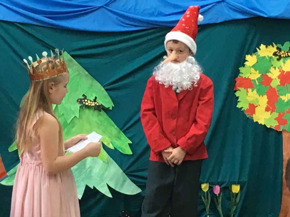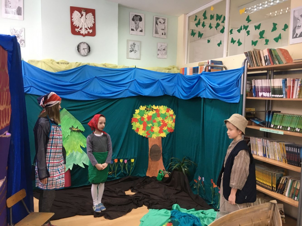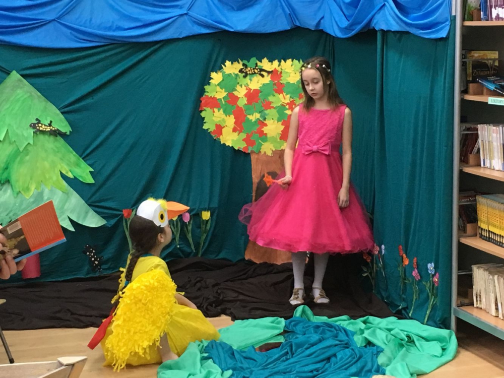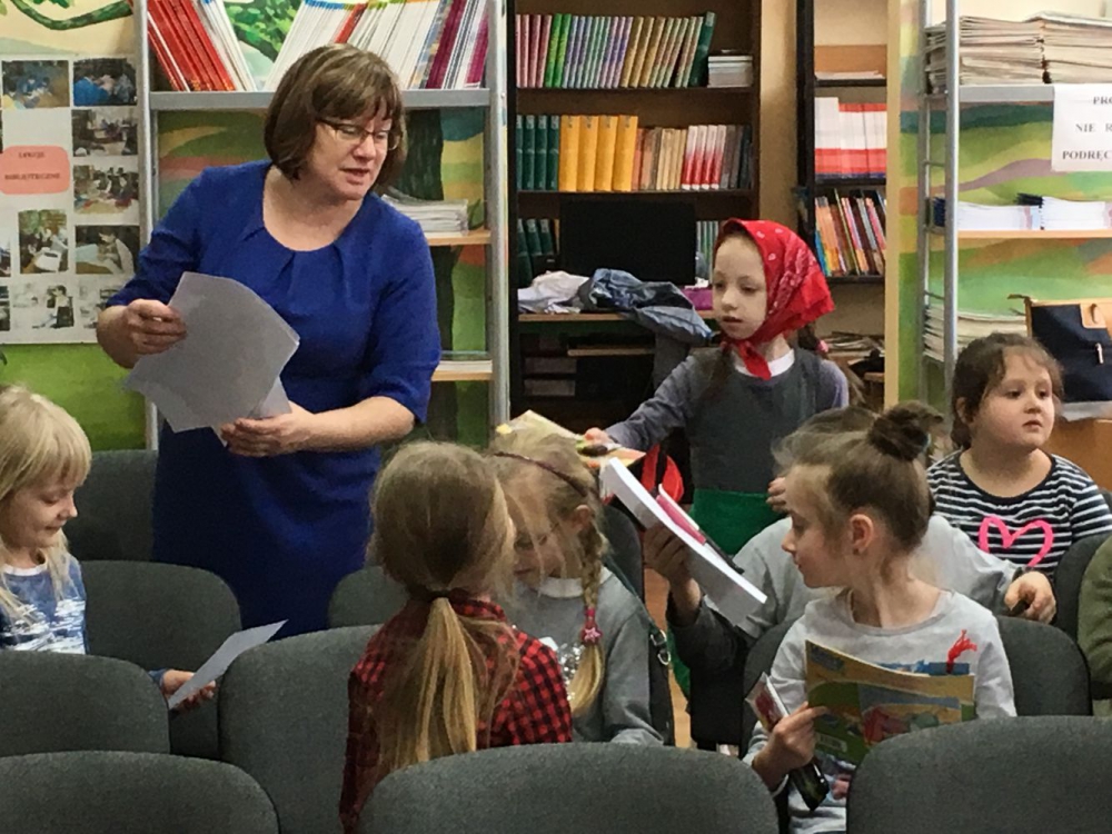 Wyprawę w świat bajek zaproponowała uczniom pani Alina Wróbel oraz starsze koleżanki i koledzy. Wśród postaci bajkowych było brzydkie kaczątko, dobra wróżka, królewna Śnieżka, krasnal, rybak i żona rybaka, sierotka. Uczniowie klasy pierwszej wykazali się dużą znajomością bajek. Zostali uroczyście przyjęci w poczet czytelników. Otrzymali drobne upominki: książeczki, zakładki i trochę słodkości.