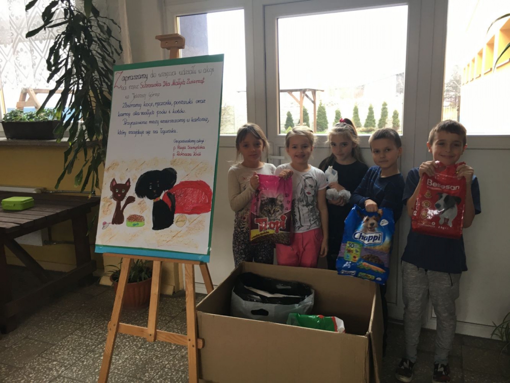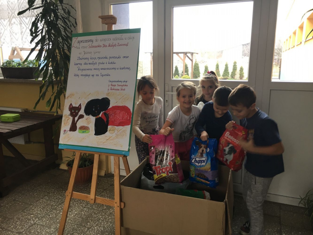 Uczniowie naszej szkoły pomagają zwierzętom ze schroniska w Jeleniej Górze. Zbieramy koce, kołdry, ręczniki oraz karmę dla małych psów i kotów. Organizatorkami akcji są: pani Alicja Sarzyńska i pani Roksana Król.